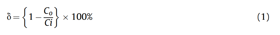 式中,Ci和Co分别为初始浓度和出口浓度(mg/L)。